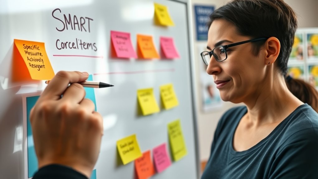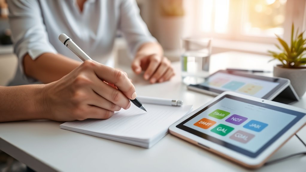 Working closely with healthcare professionals guarantees your recovery goals are realistic and tailored to your changing needs. They bring valuable expertise to help you set achievable, meaningful objectives aligned with your current abilities. Open communication guarantees your concerns and priorities are understood, leading to a collaborative approach. Your healthcare team can guide you through setting SMART goals—Specific, Measurable, Achievable, Relevant, and Time-bound—that suit your recovery stage. Regular check-ins allow adjustments based on your progress, setbacks, or new challenges. This partnership keeps you motivated and focused. Remember, your healthcare providers are there to support, advise, and adapt your plan as you advance, making sure your recovery journey remains practical and personalized.