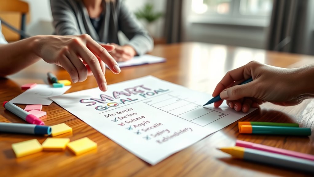 To craft effective recovery objectives, you need to define clear outcomes that guide your progress. Focus on prioritizing key skills to make your efforts targeted and manageable. Finally, set measurable targets so you can track your improvements and stay motivated along the way. Incorporating well-being techniquescan also support your recovery journey by promoting emotional resilience and stress reduction. Engaging in music therapy integration can foster emotional well-being and enhance your motivation throughout recovery. Recognizing the importance of father-daughter bond can motivate emotional healing and strengthen your mental well-being during recovery. Additionally, visualizing your desired progress with imagination and positive feelings can enhance your manifestation of recovery goals by aligning your vibrational energy with your intentions. Exploring mindfulness practices can further improve your focus and emotional stability, making your recovery process more effective.